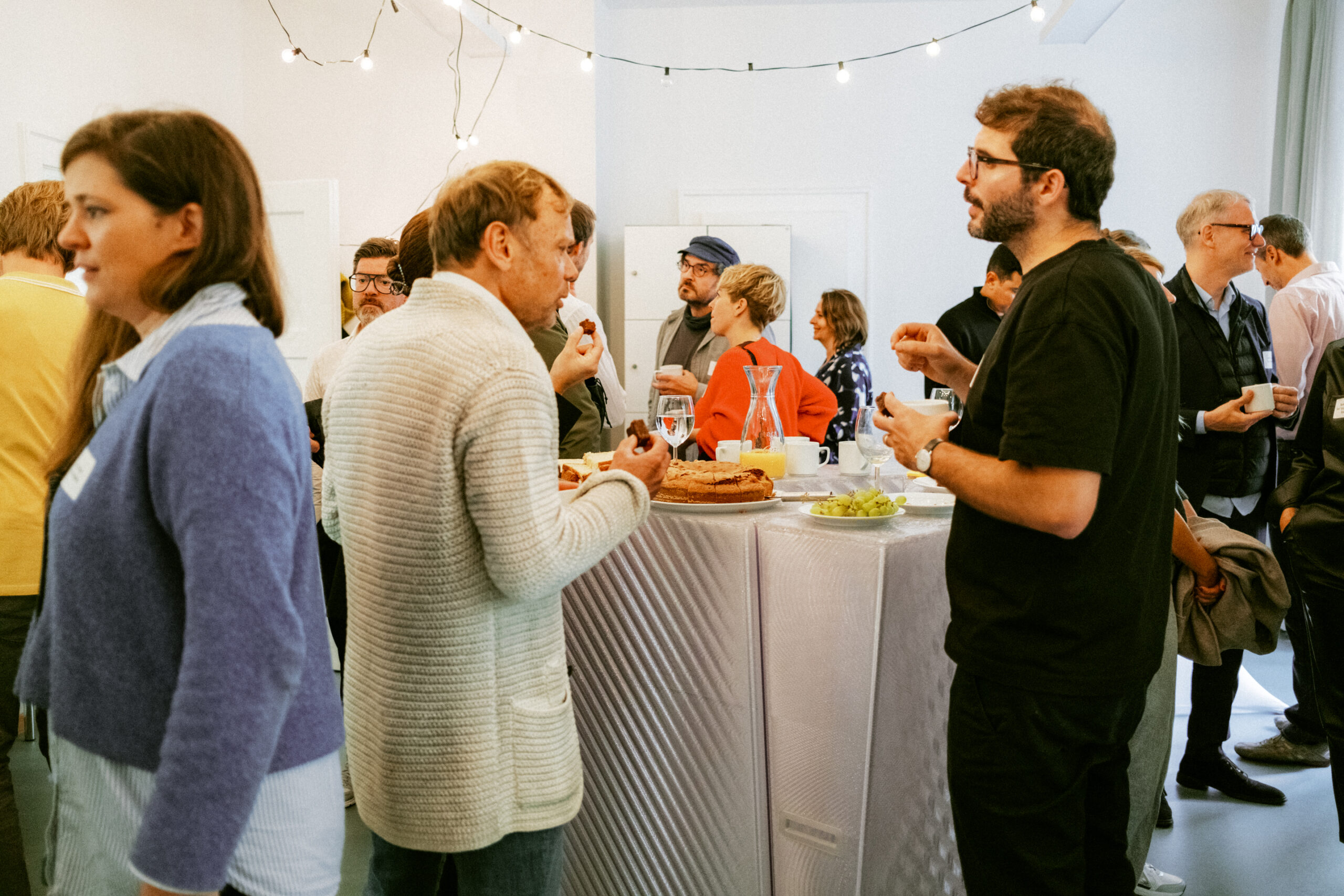 Unsere Interpretation bildet sich auf Stoffbahnen ab, die von der Decke des Arsenal-Schiffes über die bestehenden Tische hängend den Raum gliedern.